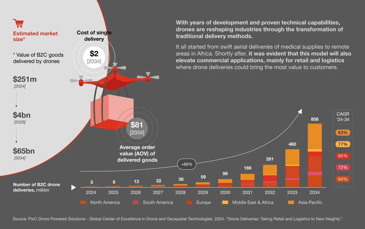 8 million commercial deliveries are expected in 2025 worldwide. As a result, by 2034, delivery costs are projected to decrease to $2.