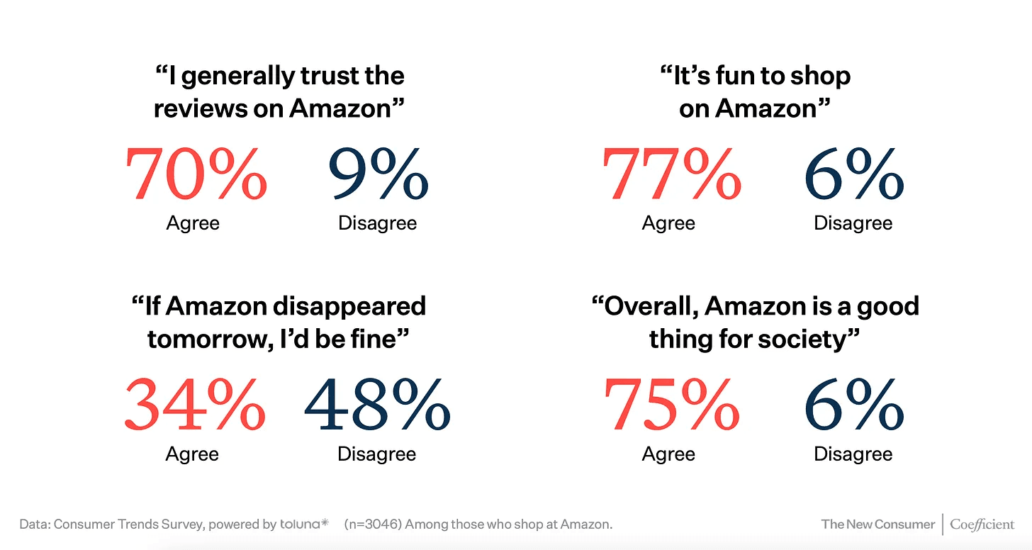 75% of Americans believe "Amazon is a good thing for society".