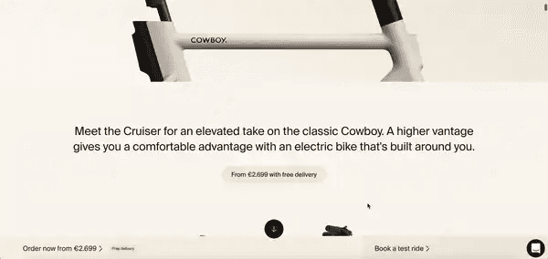 The product detail pages at Cowboy are simply beautiful. Their product aspects are visualised in an immersive way, while also providing useful specifications straightforwardly.