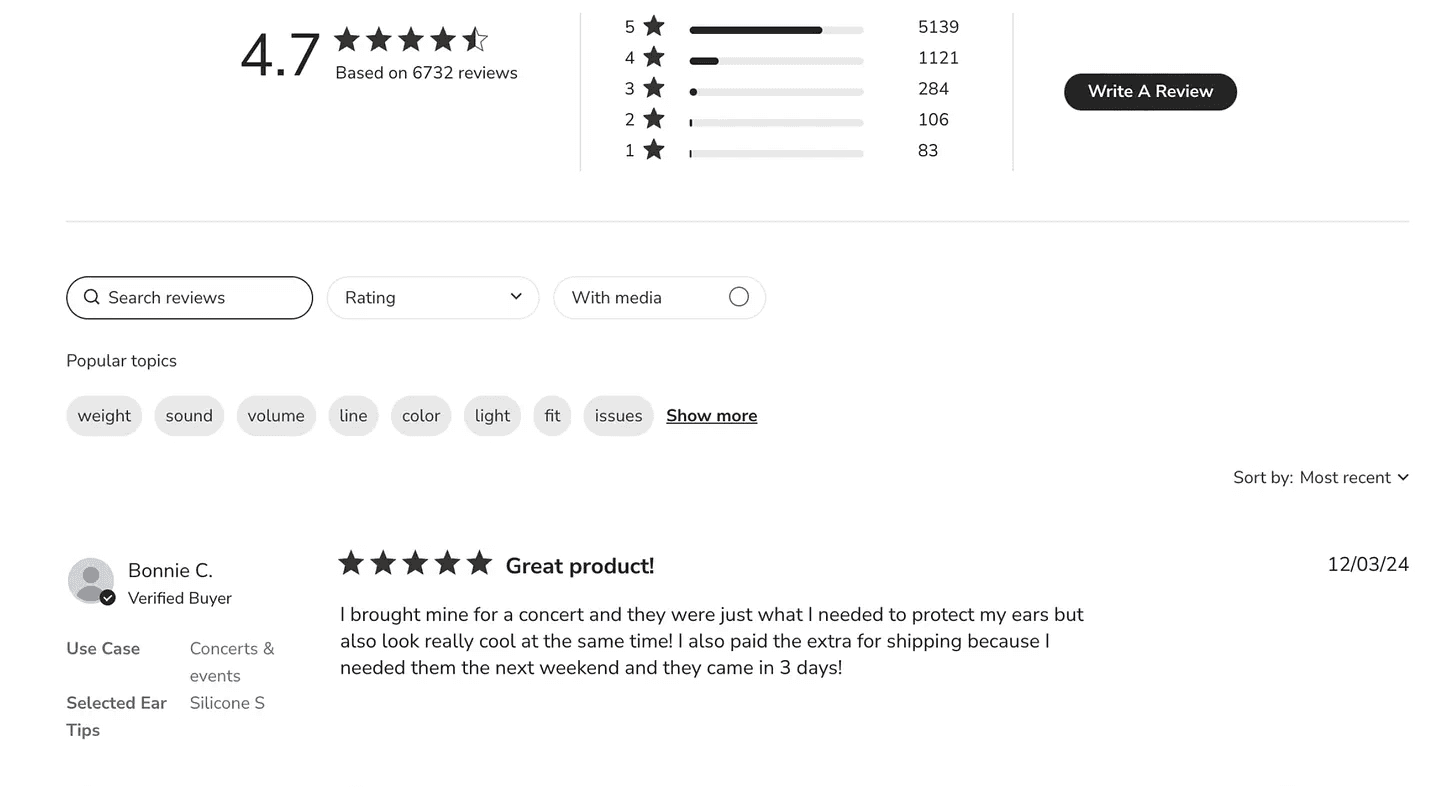 Thousands of customer reviews are presented in a user-friendly way, with the possibility to sort, filter, and search per keyword.