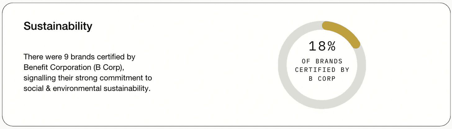 📌 OUR TAKEAWAY: With the rising environmental concerns, consumers will demand more and more transparency and accountability from brands. Achieving modern sustainability standards is a long and hard process, requiring strategy alignment, traceability, and supply chain transformations. Companies do not become sustainable overnight, so it is better to start sooner rather than later. We hope to see more sustainable brands on the Brand Radar next year.