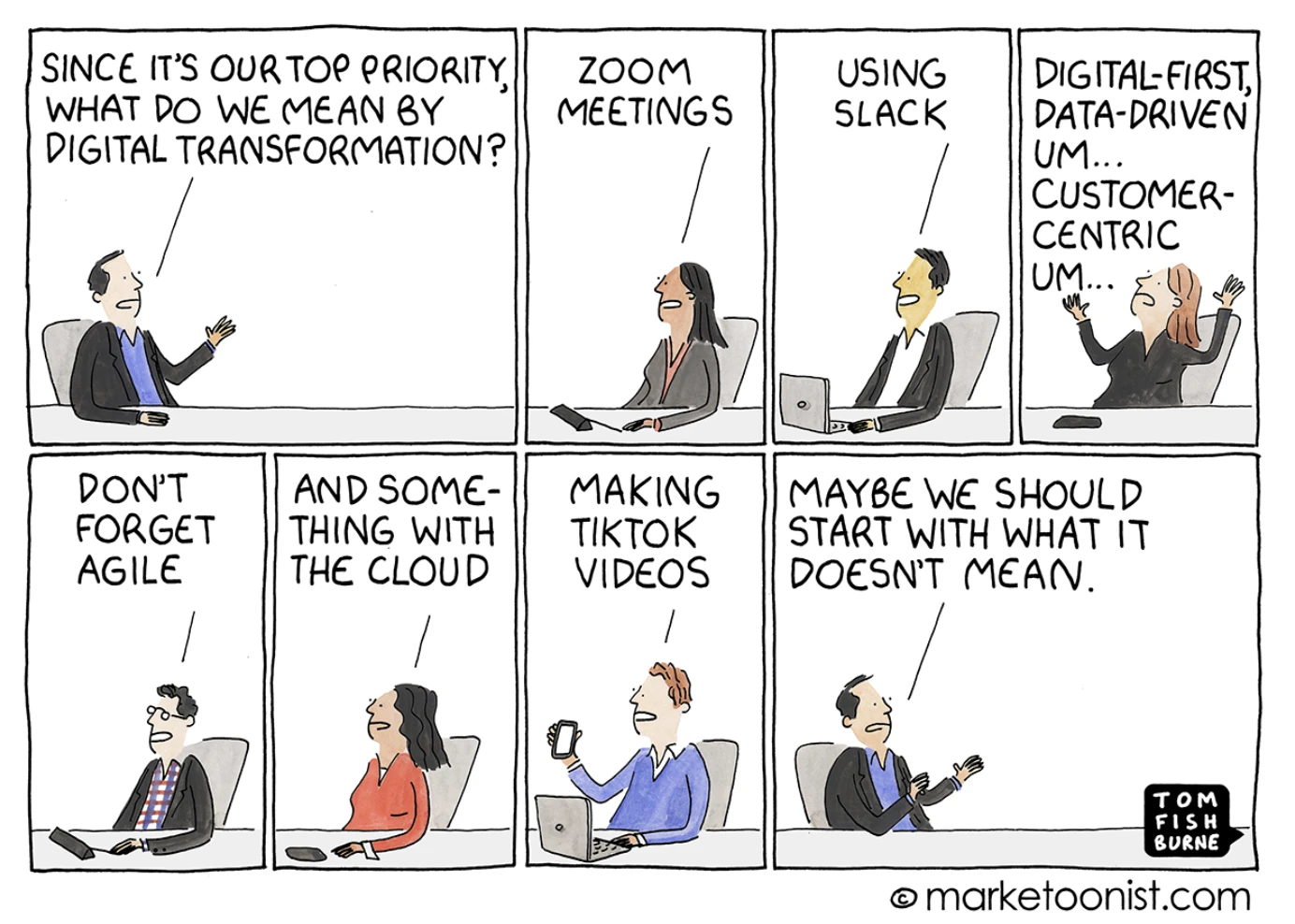 "Urgency without clarity". A cartoon by Tom Fishbourne.