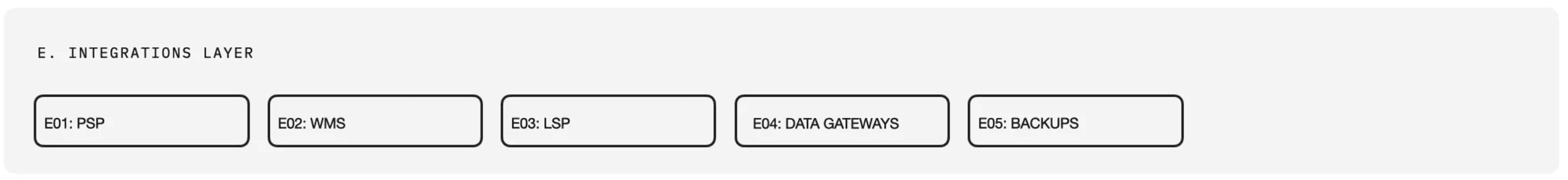 This layer allows your e-commerce systems to connect with external partners and third-party services, like payment providers and logistics companies.