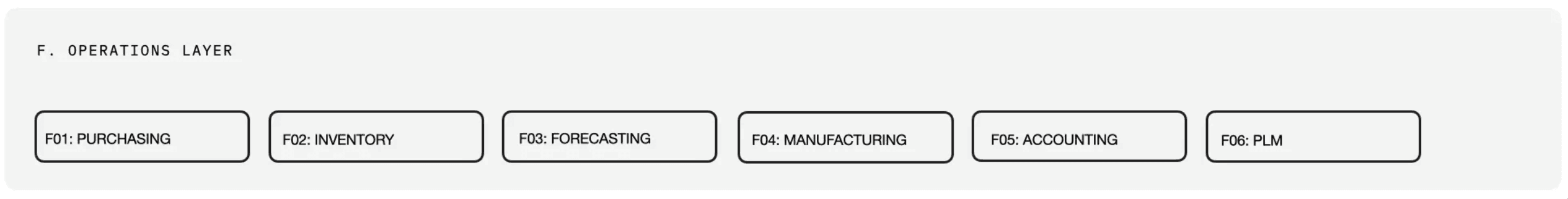 The operations layer is essential for running internal business processes efficiently, from inventory management to accounting.