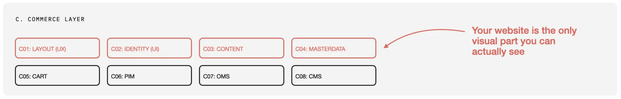 The core of your e-commerce business, this layer facilitates all online and offline sales operations, from content management to cart and payment systems.