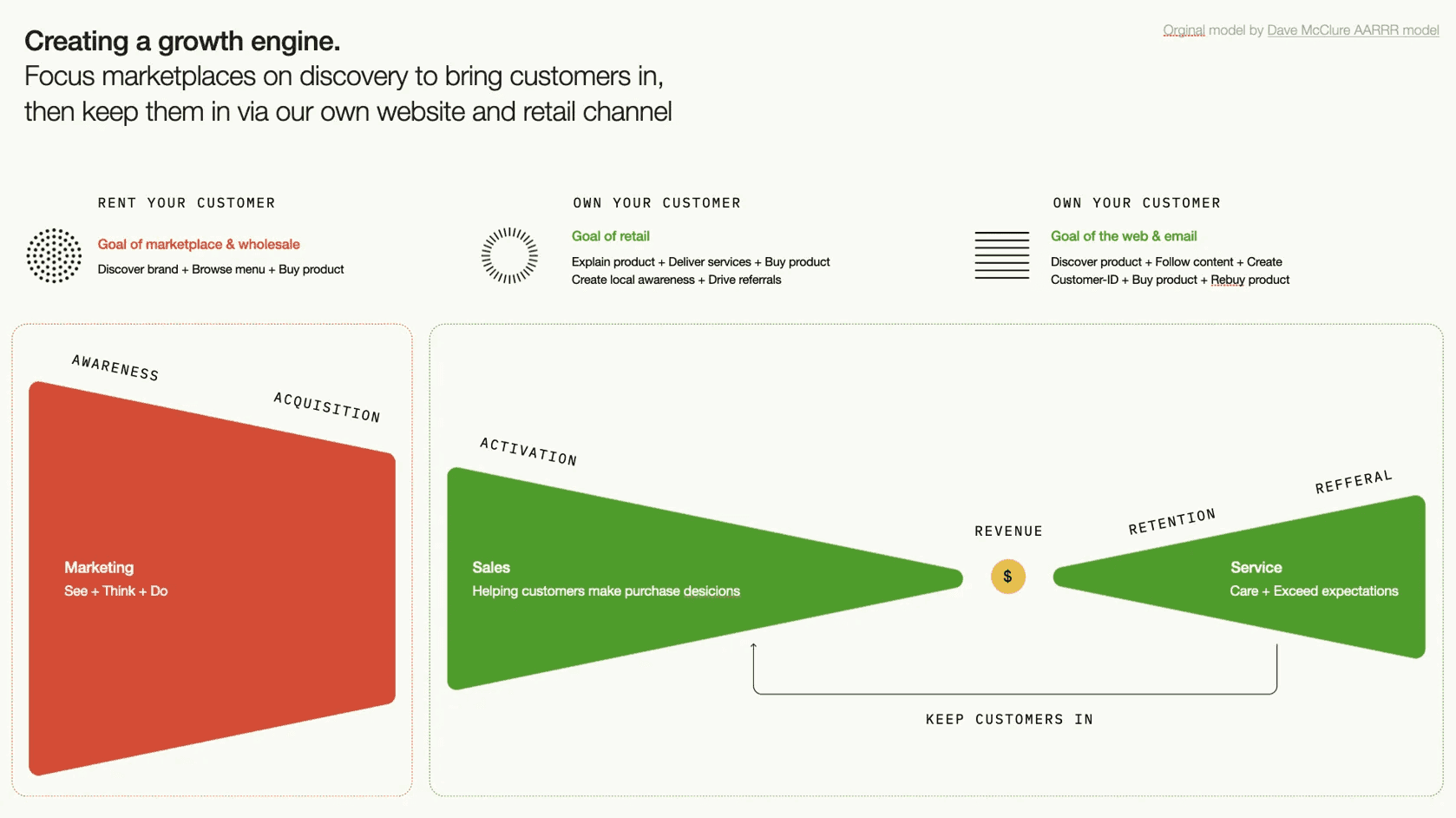 Owning customer data is fundamental for a successful growth engine. While marketplaces can help penetrate new markets, the ultimate goal should be to encourage customer loyalty on your own channels. Essentially, marketplaces should be used for customer discovery and then, retention should be driven through your own website and retail channel.