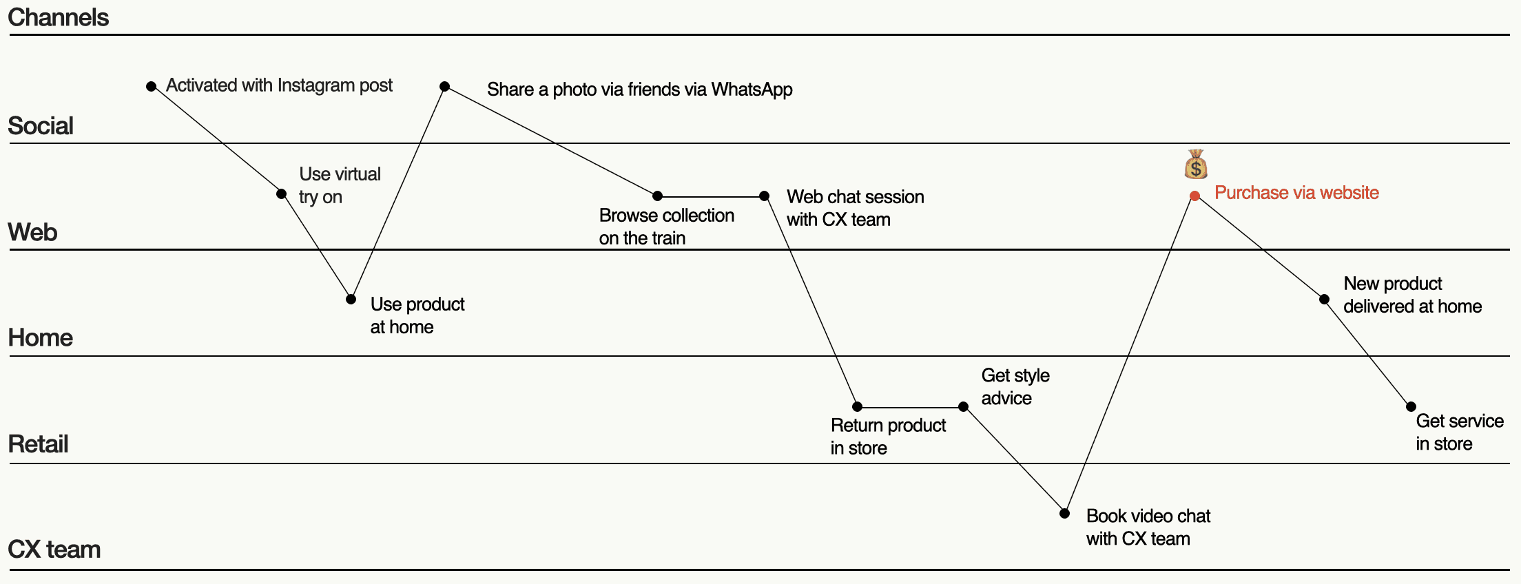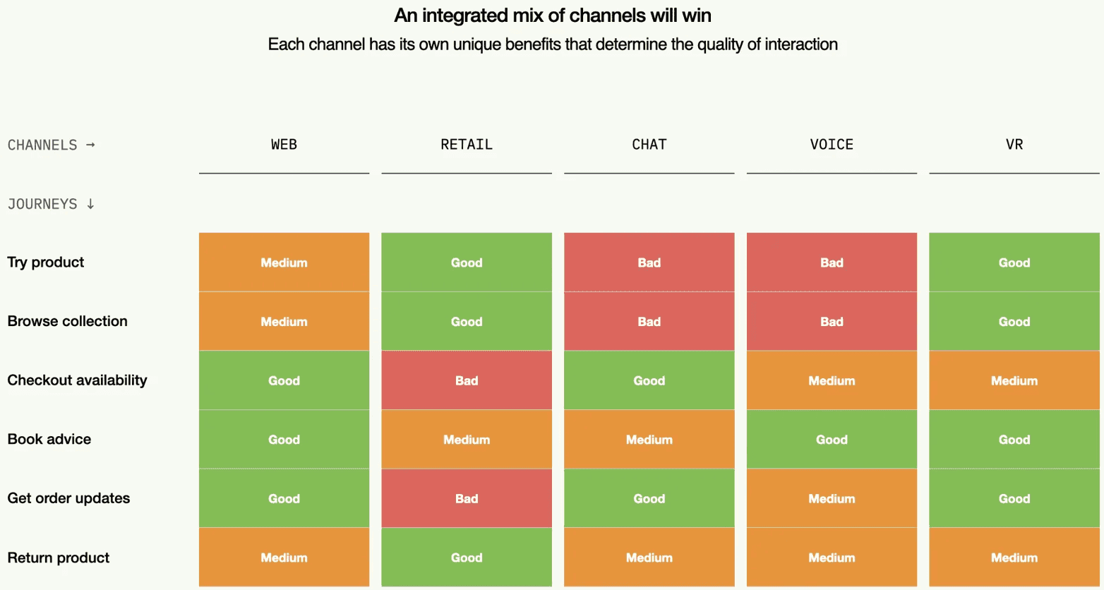 We encourage dissecting your brand's omnichannel experiences into separate customer journeys and mapping these across various channels. It's crucial to recognize that not all channels can offer the same level of quality for each journey. As we wrote in our recent article, in-store experiences provide irreplaceable tangible aspects, such as trying out a product. Online experiences, in turn, give another kind of convenience, such as having your account information stored with all the previous purchases and order updates.