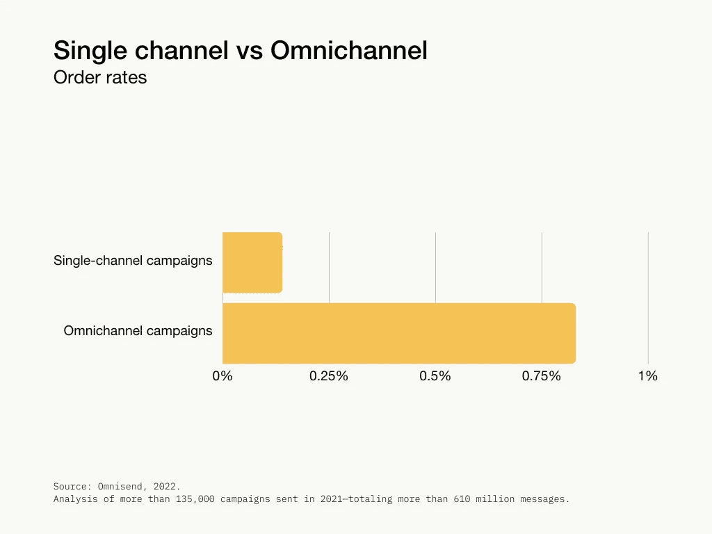 In fact, according to Omnisend report, businesses that integrate multiple channels experience a staggering 494% higher order rate compared to those relying on a single channel campaign.