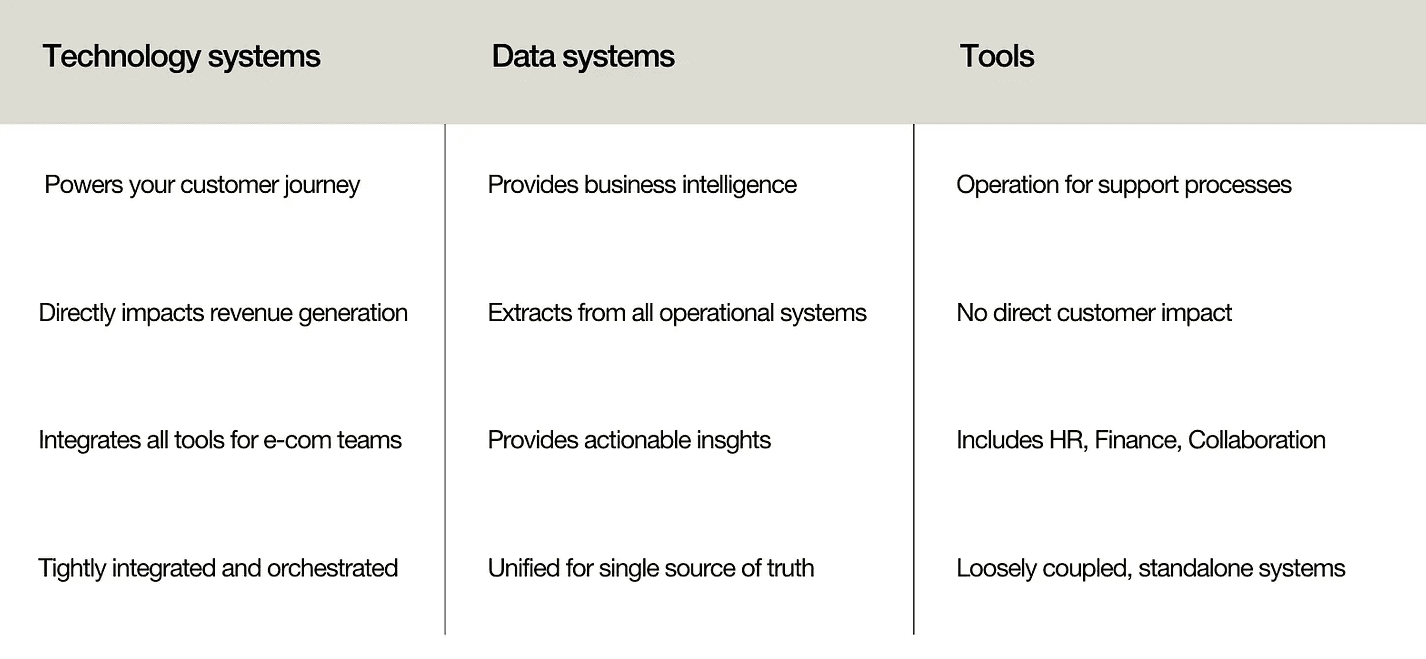 Not just a collection of software. It's a strategically aligned technology (and data) infrastructure that powers your business operations and customer experience.